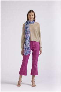 Foulard imprimé de motifs floraux dans les tons de violet. mesures 75x180 cm. composition : 80% polyester 20% viscose