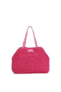 fourre-tout crocheté avec breloque cœur couleur et bordure raphia hot pink