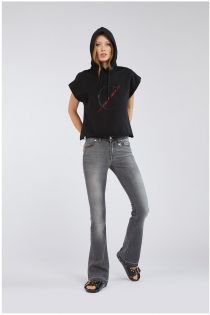 Ce gilet court en tissu molletonné avec capuche et logo brodé sur le devant est un vêtement agréable et extrêmement séduisant. Finition des ourlets à coupe nette pour un effet sport très tendance