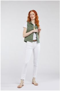 Gilet en toile bull denim avec ruban ethnique appliqué sur le col
