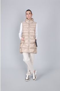 Gilet matelassé mi-long en nylon irisé à la coupe évasée. Idéal pour un look décontracté et confortable. Coupe classique. Le mannequin mesure 173 cm et porte une taille S.