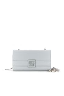 Grand portefeuille à rabat en cuir grainé ceinture ornée du logo carré assorti bandoulière chaîne amovible