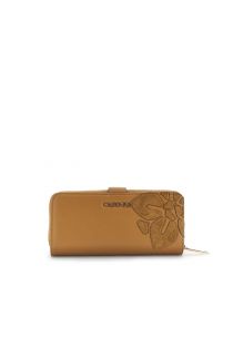 grand portefeuille zippé aspect cuir avec applications hazelnut