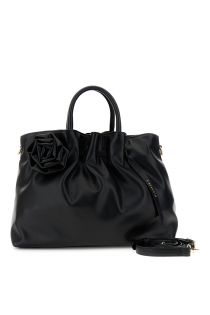Grand sac souple plissé en matière effet nappa orné d'une applique rose assortie. spacieux et élégant avec des anses structurées et une bandoulière amovible il est idéal pour toutes vos tenues du matin au soir. dimensions : 35 cm (longueur) × 27 cm (hauteur) × 13 cm (profondeur)