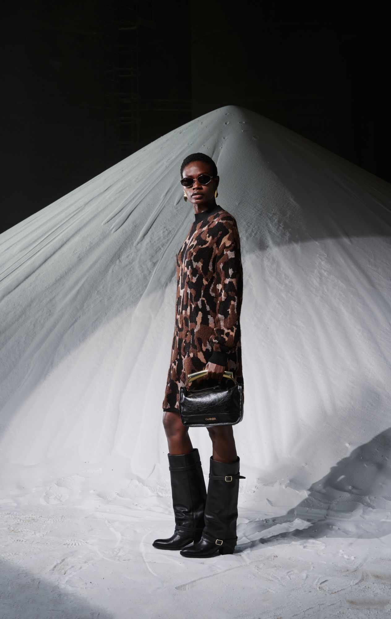 Des accessoires sombres et des textures animales apportent du caractère à chaque tenue.
