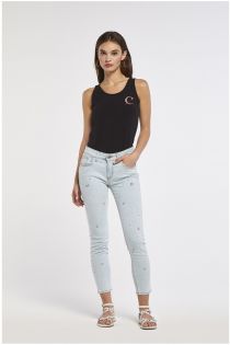 Jean brigitte modèle skinny en toile stretch avec application élégante de strass sur les jambes.