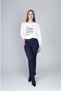 Jean court et évasé en denim ultra-stretch, idéal pour un look casual chic. Confort et polyvalence se conjuguent dans ce modèle qui flatte la silhouette avec style et praticité. Le mannequin mesure 172 cm et porte une taille S.