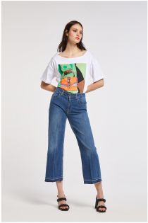 Jean greta modèle jupe-culotte en toile hyper-stretch avec ourlet effiloché
