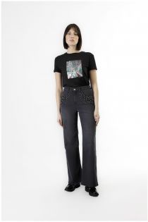 jean large en denim avec perles sur les poches anthracite