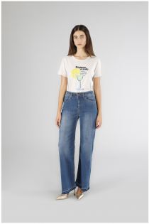 Jean modèle gina avec une coupe large. passants de ceinture fermeture zippée et boutonnée cinq poches. fabriqué en toile super extensible. polyvalents et confortables ils sont parfaits pour n’importe quel look.