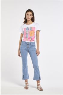 Jean virna modèle cropped flare en toile hyper-stretch avec boutonnage visible