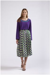 Jupe corolle au genou en crêpe de viscose imprimé. fermeture à zip sur le côté.