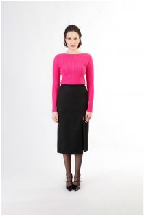 Jupe midi en tissu polyviscose. la jupe a une fente latérale importante avec un zip oblique décoratif.