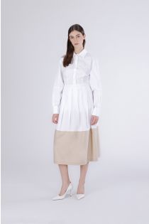 Jupe longue en popeline de coton plissée à la taille pour un effet volume et fluidité. un volant contrastant à l'ourlet apporte une touche féminine et raffinée. le mannequin mesure 171 cm et porte une taille s. coupe : classique.