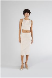 Jupe crayon longueur midi en tissu stretch. fente et fermeture zippée cachée au dos. simple élégant et moderne apporte de la sophistication à votre garde-robe de tous les jours. a associer avec le haut coordonné.