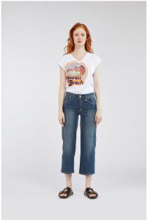 EverGreen : Jean Greta, modèle jupe-culotte, cinq poches, au design contemporain et polyvalent.