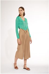 Jupe-culotte à la ligne souple réalisée en tissu Tencel léger et confortable. La construction particulière de la ceinture à revers permet de le porter avec un haut rentré à l’intérieur afin de mettre en valeur ce détail stylé.