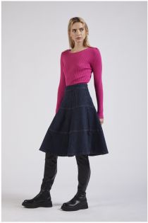 Jupe en toile de jean confort. les coupes donnent du mouvement à la tête.