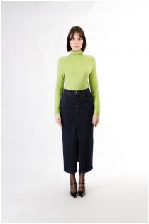 Jupe longue en jean avec fente sur le devant. fermeture zippée et boutonnée sur le devant. look phare : une jupe longue avec un pull xxl à manches supplémentaires.