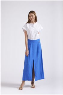 Jupe longue avec fente sur le devant en lin mélangé. fermeture à zip sur le côté. simple élégante et moderne elle rend sophistiquée votre garde-robe de tous les jours.