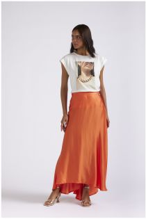 jupe longue en satin orange