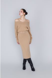 Jupe midi en viscose mélangée, idéale pour des looks décontractés et polyvalents. Coupe classique et tissu chaud et confortable. Le mannequin mesure 172 cm et porte une taille S.