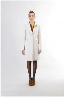 Manteau basique intemporel à simple boutonnage. le col est orné d'une broche. parfait pour rehausser instantanément les looks de tous les jours.