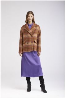 Manteau court à double boutonnage réalisé dans un tissu chaud en laine mélangée.