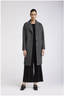 Manteau à boutonnage simple avec poches plaquées en tissu poly-viscose à chevrons.