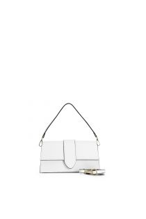 mini-sac rigide en cuir rigide martelé avec rabat white
