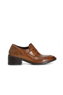 Mocassins en cuir pour femme ornés de cabochons sur le contrefort. hauteur du talon 50 mm. la semelle intérieure est en cuir.