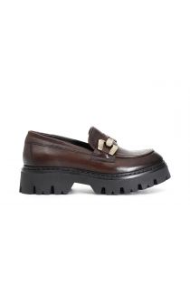 Mocassins en cuir pour femme agrémenté d'une attache sur le passant. la semelle intérieure est en cuir. modèle polyvalent et dynamique idéal pour compléter de nombreuses tenues.