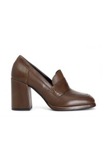 Mocassins en cuir pour femme avec décoration sur le dessus. pointe et talon carrés de 85 cm. semelle intérieure en cuir. chaussures particulièrement polyvalentes et chics pour interpréter avec style les looks de bureau et de loisirs.