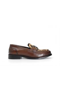Mocassin en cuir pour femme avec insert en peau de poney enrichi d'un mors de cheval. doublure et semelle intérieure en cuir.