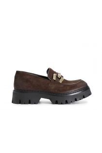 Mocassins pour femme en cuir suédé enrichi d'une attache spéciale sur le passant. la semelle intérieure est en cuir. modèle polyvalent et dynamique idéal pour compléter de nombreuses tenues.