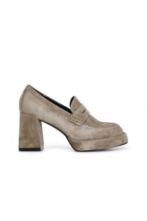 Mocassins en daim avec un talon de 80 mm et une plateforme de 20 mm. la semelle intérieure est en cuir. confort et élégance à la fois et un caractère unique qui s'adapte à toutes les tenues.