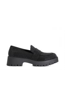 mocassin en microfibre avec strass black