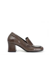 Mocassins pour femme en cuir verni avec surpiqûre ornementale sur la tige. son style très chic vous permet de le porter avec n'importe quelle tenue pour tous les jours ou en soirée. la pointe et le talon sont carrés.