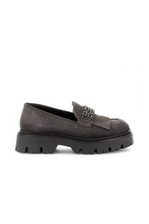 mocassin femme avec frange et accessoire en daim asphalt