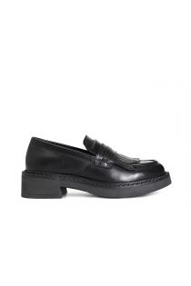 Mocassin pour femme en cuir avec frange. talon haut de 50 mm. la semelle intérieure est en cuir.