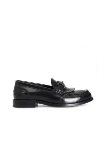 mocassin pour femme en cuir brossé avec franges black