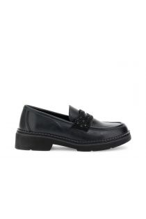 Mocassins pour femme en similicuir ornés d'une bride à strass et cloutée. Semelle intérieure en cuir pour un confort optimal au quotidien. Talon de 3,5 cm pour une élégance polyvalente.