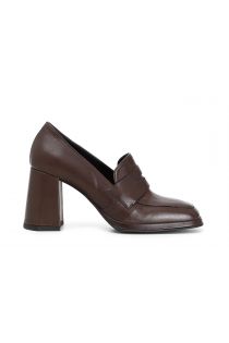 Mocassins en cuir à talon moyen avec pointe carrée de couleur contrastée.