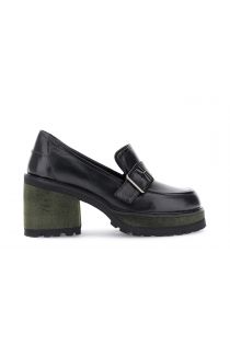 Mocassins en cuir avec boucle décorative et semelle crantée. Doublure et semelle intérieure en cuir pour un confort optimal. Talon de 9 cm pour un style audacieux et contemporain.