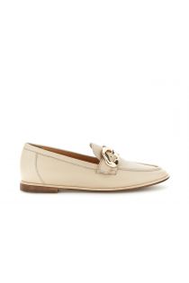 mocassins en cuir avec boucle dorée beige