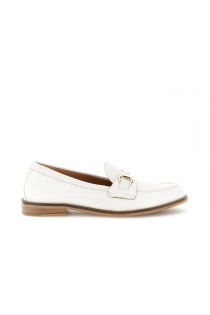 Mocassins en cuir lisse avec boucle en métal doré. semelle intérieure en cuir et talon de 1.8 cm. une chaussure au design simple et raffiné. lignes épurées bout légèrement carré et petit talon pour un confort optimal au quotidien. ces mocassins sont parfaits pour des tenues élégantes et décontractées du travail aux loisirs.