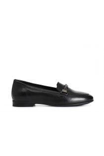 Mocassins femme en cuir agrémentés d'un accessoire en strass. la semelle intérieure est en cuir. talon haut de 15 mm. modèle polyvalent et dynamique idéal pour compléter de nombreuses tenues.