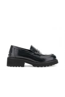 Mocassins femme en cuir brossé à semelles épaisses. Doublure et semelle intérieure en cuir pour un confort optimal. Talon de 4,5 cm. Élégance et assurance pour toutes vos tenues urbaines.