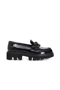 Mocassins en cuir verni avec chaîne et semelle crantée