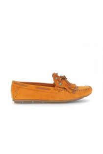 mocassins en daim à franges orange